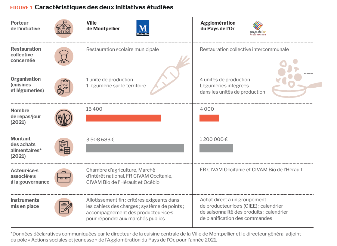 Pour y répondre, l’étude s’est appuyée sur deux initiatives d’approvisionnement de la restauration scolaire dans la ville de Montpellier et l’Agglomération du Pays de l’Or.