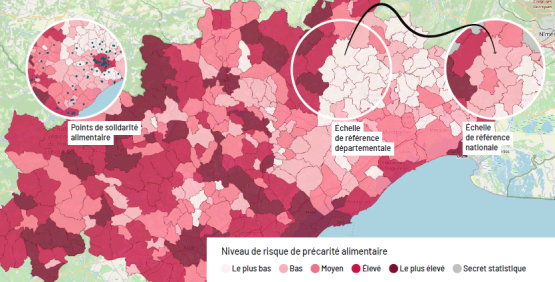 C’est une plateforme numérique permettant de caractériser les risques de précarité alimentaire dans les communes et quartiers des grandes communes (IRIS) des départements français.