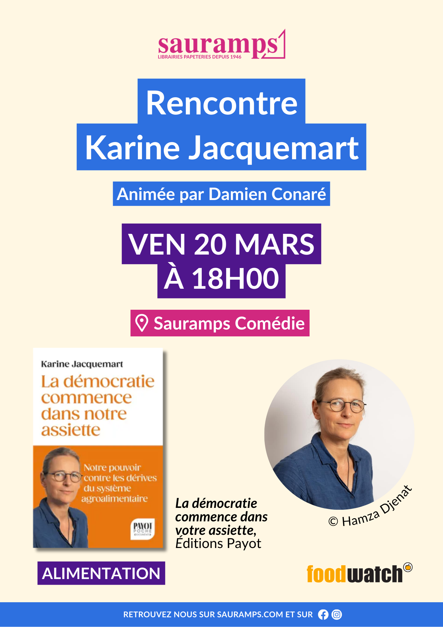 Vendredi 20 mars 2026 à 18h, la librairie Sauramps organise à Montpellier une rencontre avec Karine Jacquemart, directrice France de l’ONG Foodwatch, autour de son ouvrage La démocratie commence dans nos assiettes.