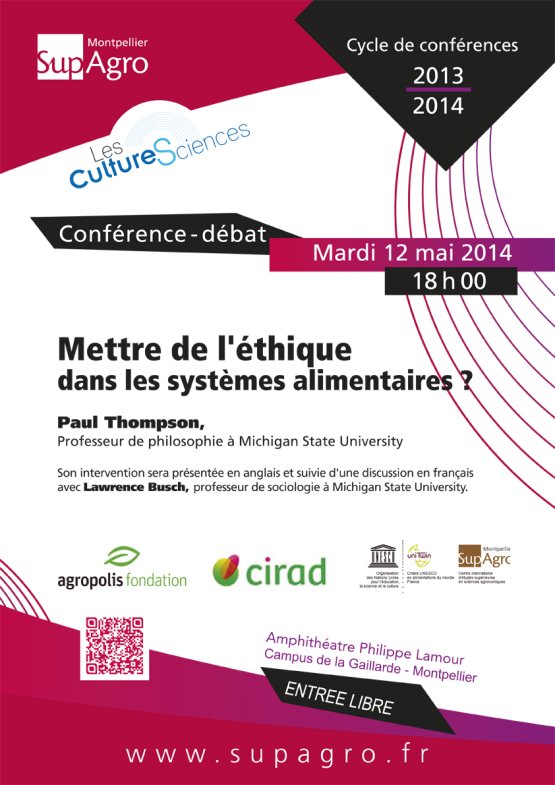 Dans le cadre du cycle de conférences Cultures Sciences organisées par Montpellier SupAgro, Paul Thompson, professeur de philosophie à Michigan State University, a été invité à discuter la question de la place et la forme de l’éthique dans les systèmes alimentaires.