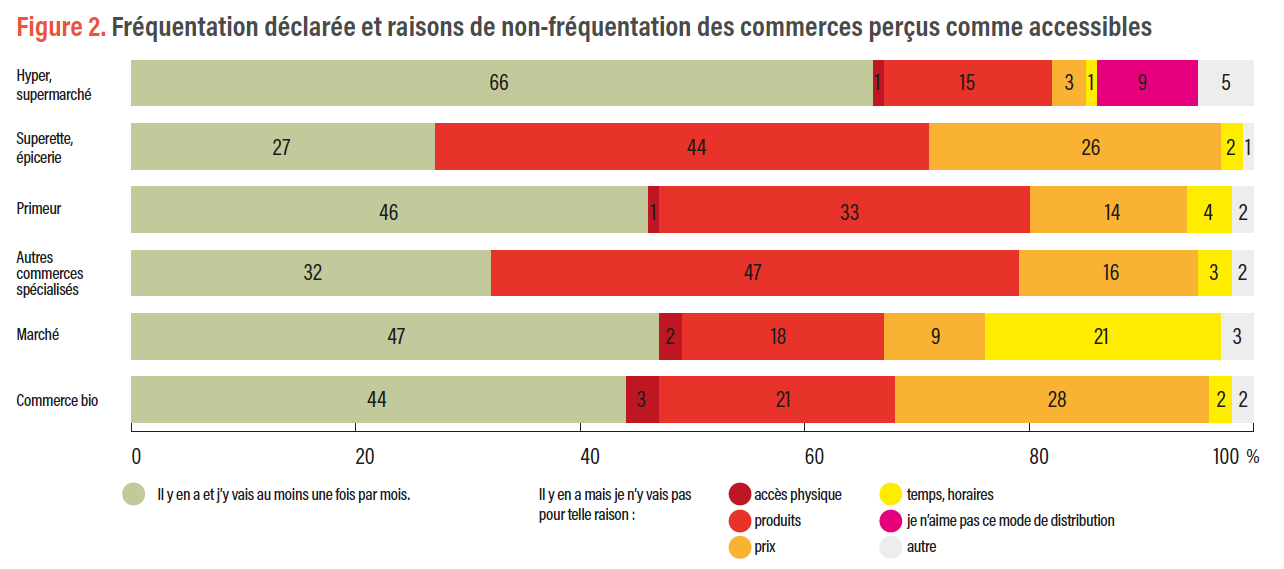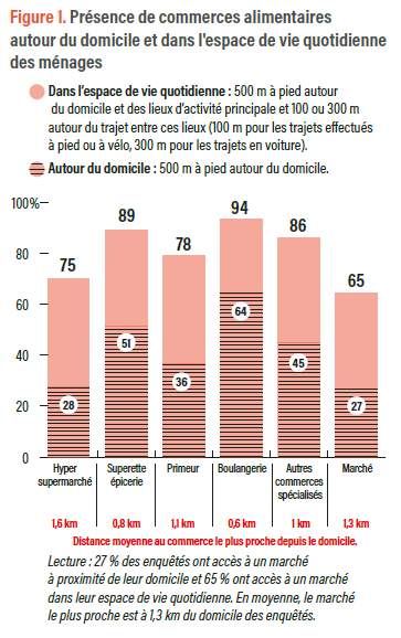 des commerces alimentaires. En effet, les ménages ne fréquentent pas tous les commerces dont ils disposent à proximité, principalement à cause des prix, des produits proposés et des horaires.